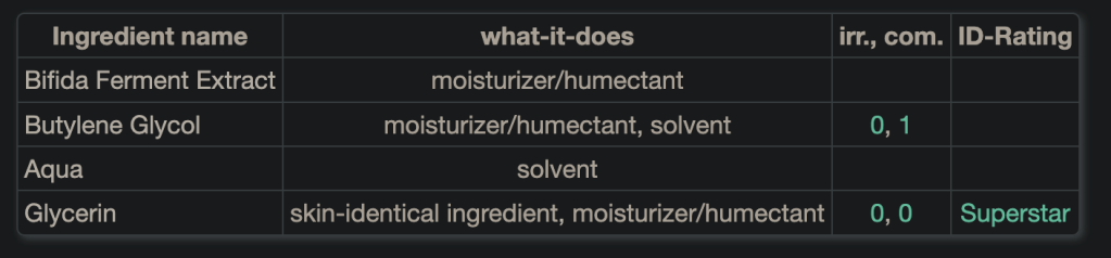 Die Bifida Essence von mixsoon ist ein hervorragendes „Barrier-Booster“-Produkt, vor allem als Zwischenschritt vor stärkeren Seren. Kaum Risiko für Irritationen, da keine Duftstoffe, Öle oder Alkohol enthalten sind. Aber mit seinen nur aufs Nötigste gehaltenen Inhaltsstoffen eher für die gedacht, die mehr oft nicht vertragen. Von allen Essencen bei mixsoon gefällt mir persönlich diese am wenigsten. Schlicht zu langweilig bei normaler Haut. Sollte ich aber meine Hautbarriere neu aufbauen müssen dann komm ich zurück. Definitiv gesünder als das von Estee Lauder.