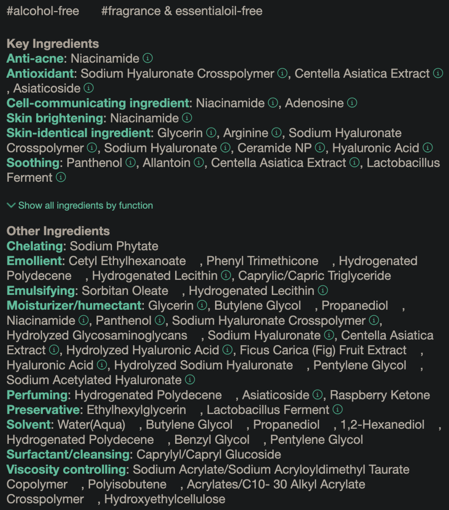 Hydrogenated Lecithin, Ceramide NP, Asiaticoside, Asiatic Acid, Madecassic Acid (alle aus Centella Asiatica), Niacinamide, Hydrogenated Polydecene, Polyisobutene. → stärken die Hautbarriere, beruhigen gereizte Haut und helfen, Rötungen zu mindern.
