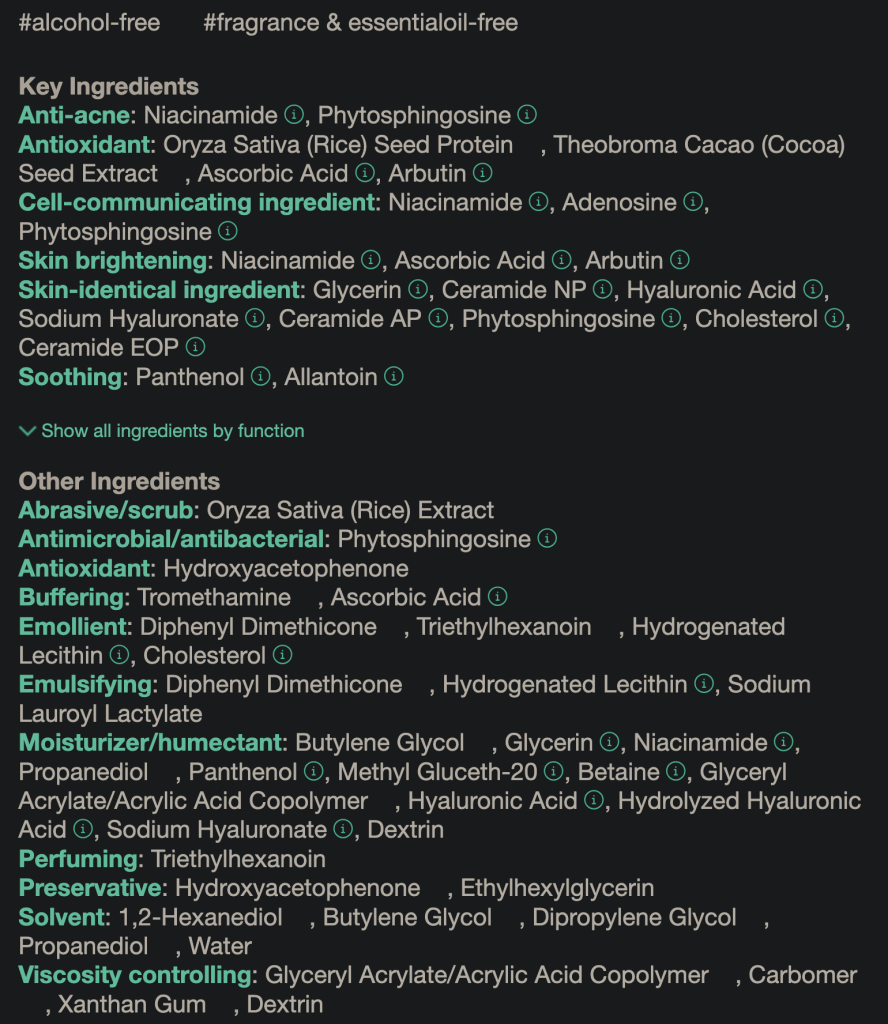 Oryza Sativa (Rice) Bran Water/Extract (Reiskleiewasser/-extrakt) (70%): Reis ist bekannt für seine nährenden, feuchtigkeitsspendenden und sanft peelenden Eigenschaften, die zu einem strahlenden Teint beitragen.