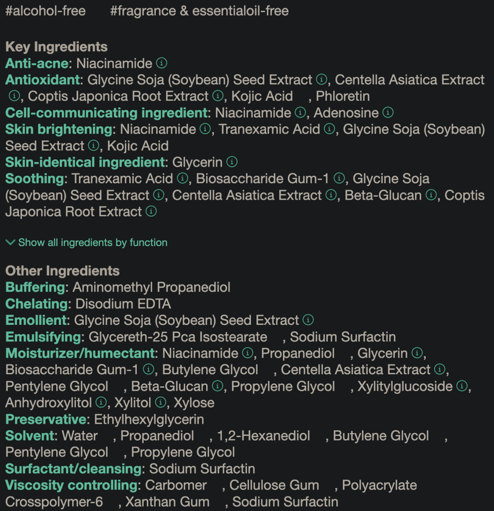 - Polymere: Enthält Polyacrylate Crosspolymer-6 und Carbomer. Diese sorgen für die angenehme „Semi-Essence“-Textur (etwas dicker als Wasser), sind jedoch als flüssige Kunststoffe ökologisch schwer abbaubar.