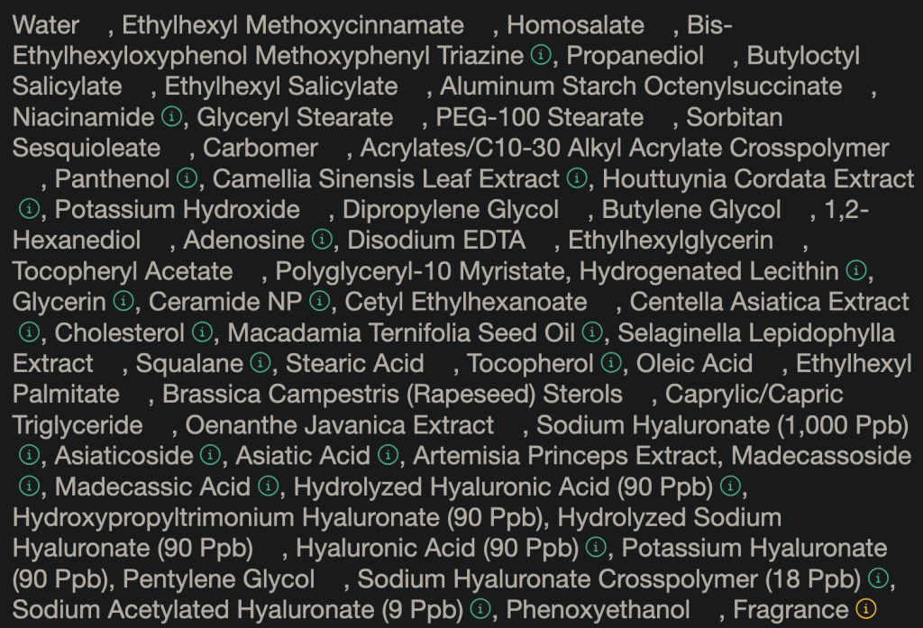 - Ceramide NP, Cholesterol, Macadamia Ternifolia Seed Oil, Squalane: Essenziell für die Stärkung der Hautbarriere und den Schutz vor Feuchtigkeitsverlust.