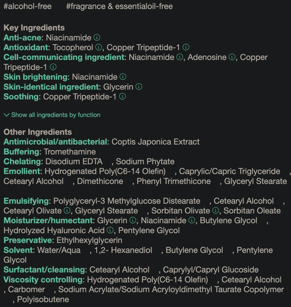 - Coptis Japonica Extract: Wirkt beruhigend, antioxidativ und hilft, Schwellungen zu reduzieren.